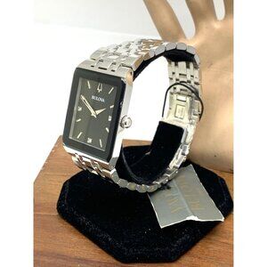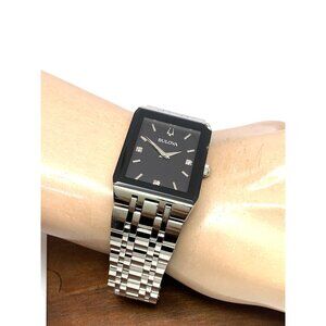 Bulova Men's Watch 96D145 Diamond Black Dial Silver Stainless Steel Quartz CHIP