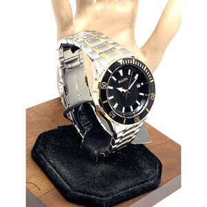 Bulova Men's Watch 98B394 Black Dial Date Quartz Two Tone Stainless Steel 44mm $450 (K7575)