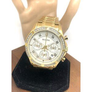 Bulova Men's Watch 98E113 Quartz Chronograph Diamond Slver Dial Gold Steel 42mm $850 (H7513Y)