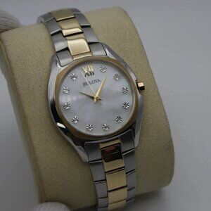 Bulova Two-Tone Steel MOP Diamond Dial Ladies Quartz Watch