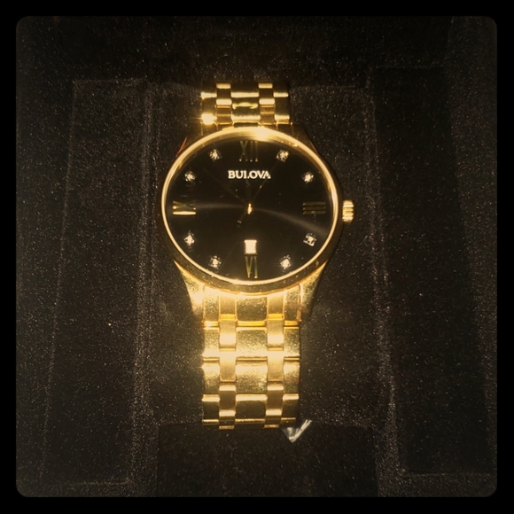 Beautiful Bulova gold watch that has hardly been worn and was well taken care of, has pins if you have a thicker wrist. In original box