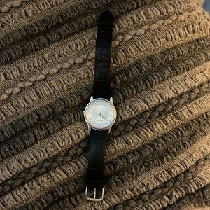 This is a Genuine leather black Bulova watch just like new. May have been worn two times it does need a battery. No Box.