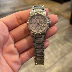 Beautiful stainless steel chronograph pink mother of pearl woman’s watch