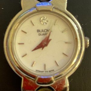 Bulova Analog Silver Tone Wristwatch with Quartz Movement and Water Resistance. Fits up to 6 1/4"" wrist. There are no extra links.
