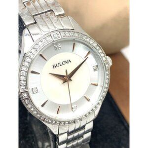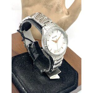 Bulova Women's Watch 96L283 Mother of Pearl Dial Silver Steel Crystal Accent $250 (K7136)