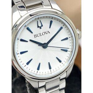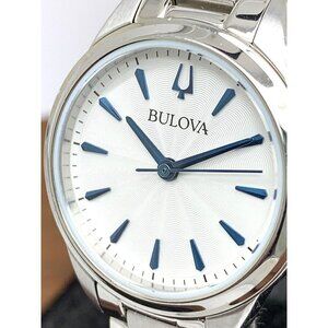 Bulova Women's Watch 96L285 Quartz White Blue Dial Silver Tone Stainless Steel (K5678)