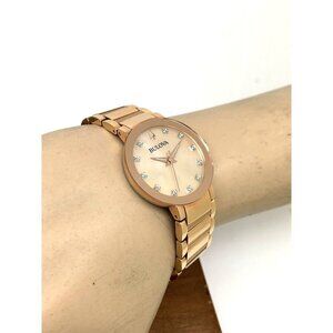 Bulova Women's Watch 97P132 Quartz Diamond Dial Rose Gold Stainless Steel 30mm $450 (K5369Y)