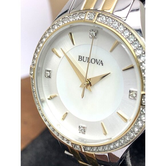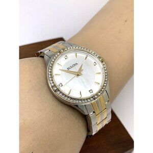 Bulova Women's Watch 98L273 Mother of Pearl Dial Crystal Accent Two Tone Steel (K6262)