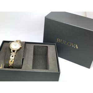 Bulova Women's Watch 98L325 Mother of Pearl Dial Gemmed Gold Steel 25mm