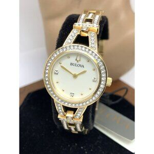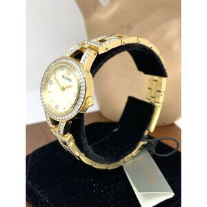 Bulova Women's Watch 98L325 Mother of Pearl Dial Gemmed Gold Steel 25mm $450 (K7232Y)