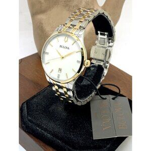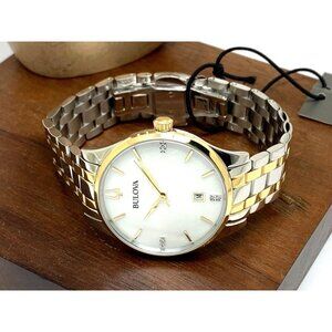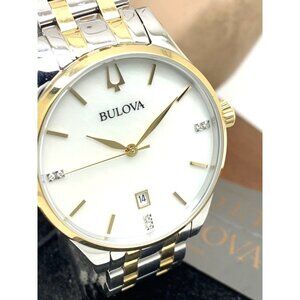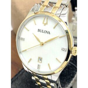 Bulova Women's Watch 98P201 Quartz Diamond Mother of Pearl White Dial Two Tone Steel $450 (K7197)