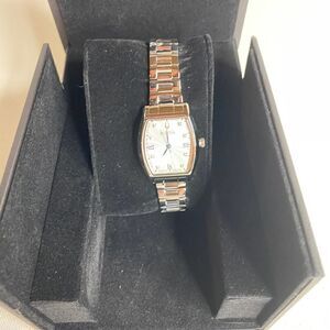 Features: Tonneau Case Shape, Scratch resistant crystal, Water resistant to 99 ft / 30 meters, Genuine Diamond Accents
