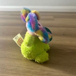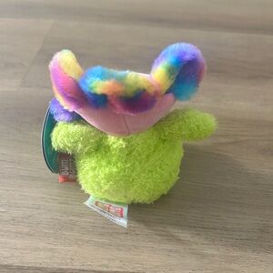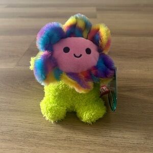 Add a burst of joy to your collection with this adorable rainbow flower BumBumz plush! Featuring a fuzzy lime green body and soft tie-dye petals surrounding a cheerful pink face. A must-have for any plush lover or BumBumz collector.
