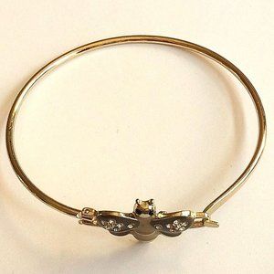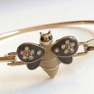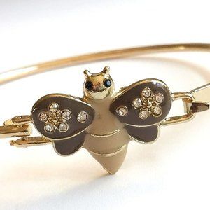 Bumble Bee Bangle Bracelet 8" Crystal Beige Enamel Gold Plated Charm