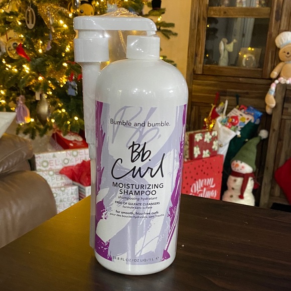 Enhance your curls with Bumble and bumble's moisturizing shampoo. Perfect for smooth, frizz-free hair. Stylish purple and white design.