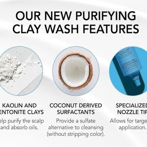 KEY INGREDIENTS: Kaolin and Bentonite Clay help purify the scalp and absorb oils. Coconut-Derived Surfactants provide a sulfate alternative that cleanses without stripping color.