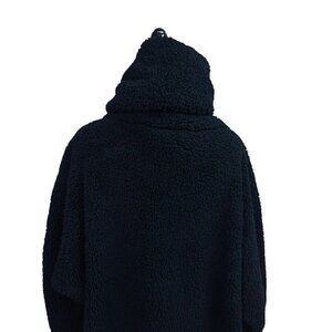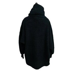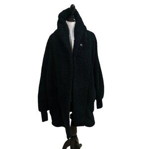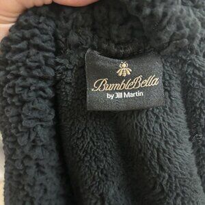 Bumblebella by Jill Martin Women's Shawl Collar Cardigan in Size XXS. (the Cardigan fits extremely oversized, I m a size Medium and it was still huge on me) Black Sherpa Plush. Long Dolman Sleeves with extended cuffs with Thumbholes. Supercozy. The fabric is 100% Polyester. Good condition, no flaws.