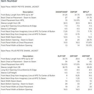 Length: petite missy length 31-1/4" to 32-5/8"; petite plus length 33-3/4" to 37-1/4"
