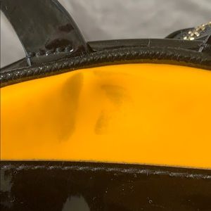 Plastic material bumblebee backpack for either kids or for a small backpack purse. Never worn. Has small stain at top (bought that way). Adjustable straps.