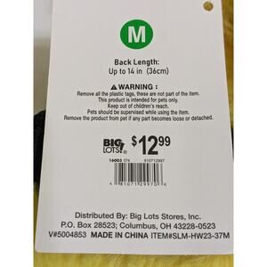 The Bumblebee Bumble Bee Dog Costume is a fun and festive outfit designed specifically for medium-sized dogs. Made from faux leather (made from soft material) with glittery wings, this Halloween costume features a multicolor design that will make your furry friend stand out in any costume party. The brand behind this product is Big Lots, ensuring quality and durability for your pet's special day. Let your dog unleash its inner bumblebee with this eye-catching and unique costume!
