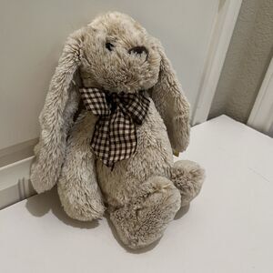 Bumi Brown Tan Plush Bunny Rabbit Floppy Ears Soft 13" Stuffed Animal Toy Brown Tan Checkered Gingham Neck Ribbon Tie