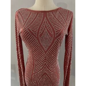 Bump Biddy Maternity Mauve Pink Bodycon Long Sleeve Dress with Rhinestones Sz M
