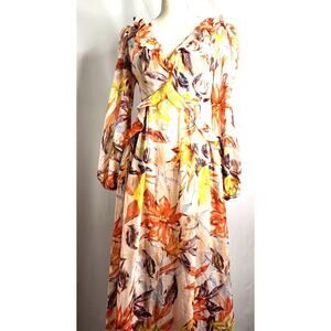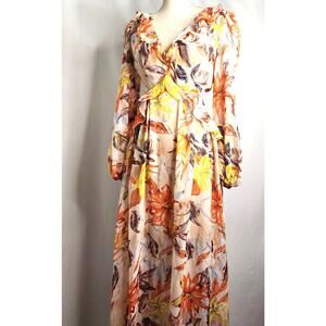 Bump Biddy Maternity Maxi Dress Size L Floral Tie Back Cottage Chic Open Waist