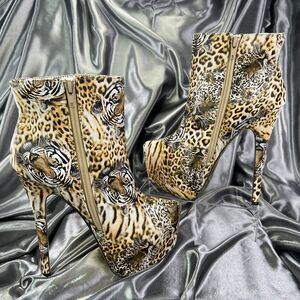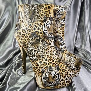 Bumper Boutique Big Cat Tiger Print Ankle Boots Booties Platform High Heel Club