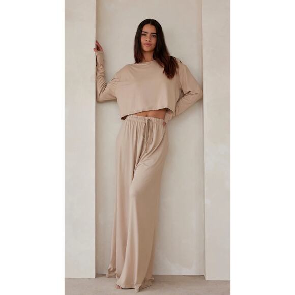 Bumpsuit Cloud Pant Maternity Lounge Pant Wide Leg Pull On Color: Oat Size M
