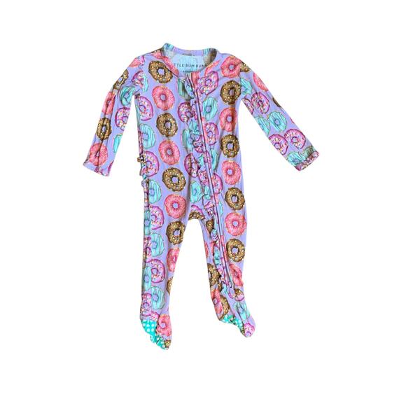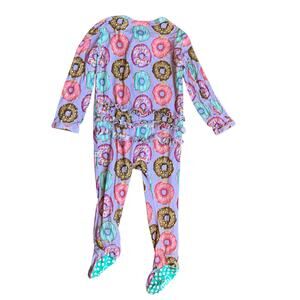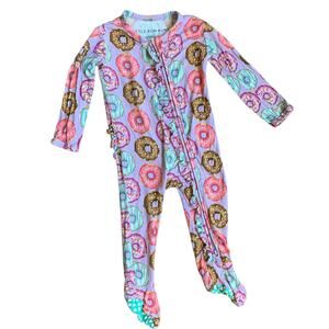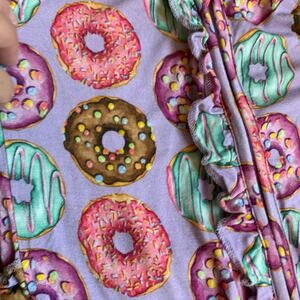 Colorful donut print bamboo ruffle footie pajamas
