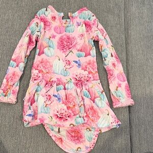 Set of two baby dresses. One features a pink floral and pumpkin design. The other has a black Halloween theme with pumpkins.