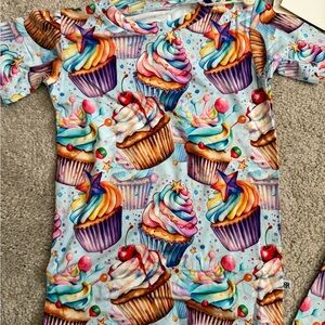 Vibrant shirt and leggings set with a fun cupcake print. Perfect for a playful look.