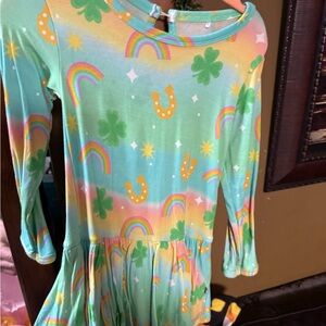 This is such a beautiful print and our all time fave. My little outgrew and we wore just a couple of times. In great condition. However there is a small stain that’s barely noticeable on the front (in picture) and can probably be easily removed. I haven’t tried and just noticed. Always washed cold and hung to dry.
