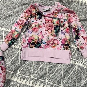 Bums and Roses pink skull jogger set. Size 6-12 months