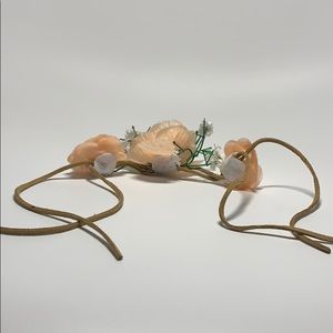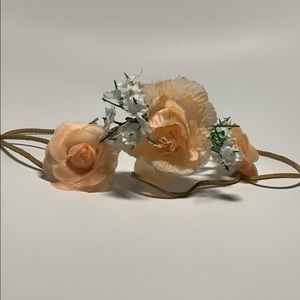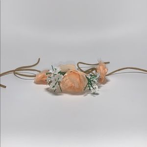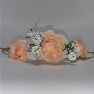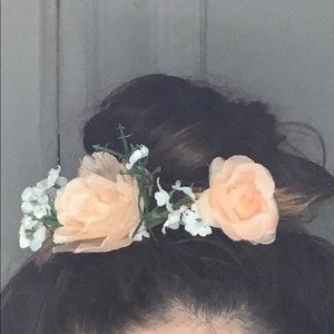 it’s a bun accessory that you put around your bun. it has been worn once. it has white and peach (fake) flowers around it 💐
