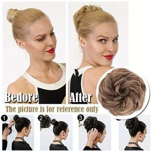 Bun Messy Hair Pieces Extensions Curly Synthetic Updo Lightest Brown Blended