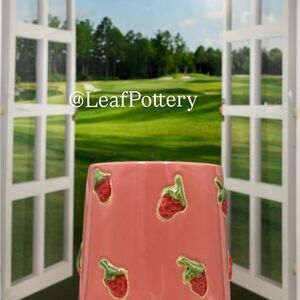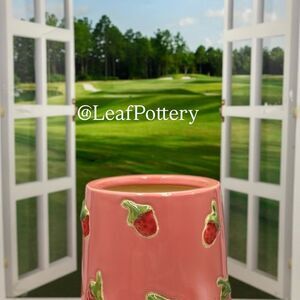 Dimensions: 7.05”H x 6.5”W, opening 4.5”, weight 3lbs 7.8oz Materials: Ceramic, No Drainage hole, Made in Vietnam, Color: Pink, Red & Green, Type: Barrel Planter, Delightful planter with strawberry details. Adds charm to any space. , Perfect for Indoor/Outdoor gardening, Don’t forget to dress up your plants 🪴