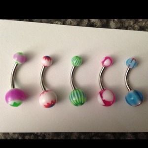 From left to right. Green star, flower, green stripes, pink and white, playboy bunny.
