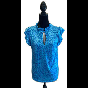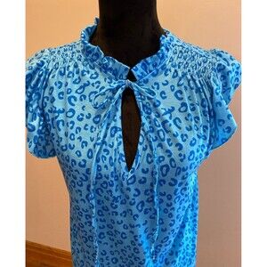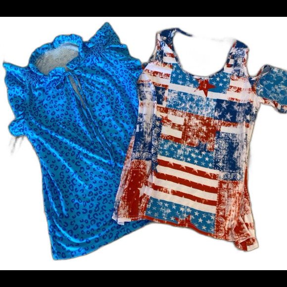 Bundle 2 Blouses Womens Sz Medium Blue Cheetah Print T Shirt Red White Blue Top