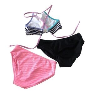 Bundle 3 Pc Art Class Halter Stripe Top Black Pink Bikinis Bottoms Set Size M8