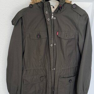 Levi's Women's Sherpa Parka Faux-Fur-Trim Hooded Army Green Jacket (Medium)
