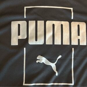 Sleek black long sleeve top. Features bold silver Puma logo on front. Gently worn. Like new