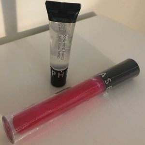 All NEW Sephora Collection lip gloss duo. Both are FULL size. 1) Sephora Collection ultra shine lip gloss in color 47 fuchsia mania-purple magenta with a hint of shimmer. On sale at $14 at Sephora. The gloss is brand new, still wrapped in original plastic wraps. 2) Sephora Collection Glossy Gloss to go. 0.26 oz (8 ml). High shine finish. Add to high shine to any color. Made in Switzerland. Sold at Sephora at $7. 3) oil infusion lip color. Color is 06 bubbly. 0.18 oz. Sold at 12. All brand new.