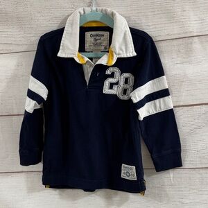 - two different long sleeve striped rugby polo shirts by Osh Kosh B'gosh. Both are size 3T