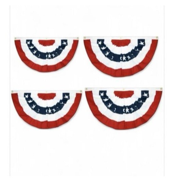 Brand new in packaging 4 Stars & Stripes brand Bunding flags. Diameter is 35.4 inches. Beautiful for outside home display. Stored in a smoke-free environment.