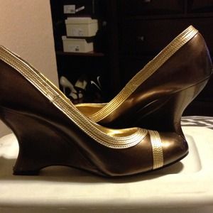 Gold thick zipper belt , wild rose brown and gold wedges , Arden b rabbit fur purse black never worn , red hat really nice bundle