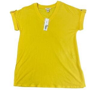Westbound Petites New canary yellow V-neck rolled sleeve long basic Tee SZ SP
