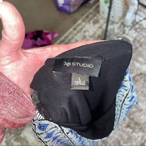 AB Studio black & Blue lightweight asymmetrical blouse Patterned top SZ L
