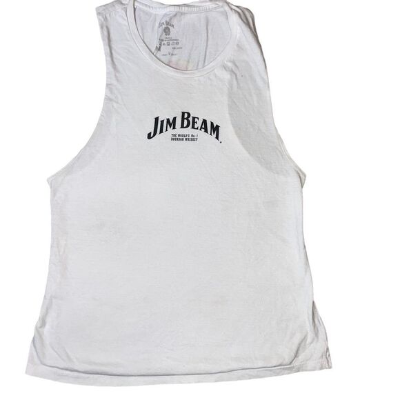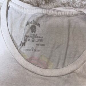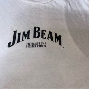 Women's Jim Beam white graphic alcohol whiskey large arm pits SZ M Worn once Whiskey Z 25