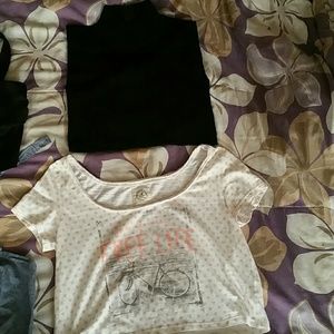 Left bottom corner small( multi-day straps) top left small(criss cross back w/ zip front) top right fits xsmall-small (turtleneck , zips in back) right bottom corner xsmall( white w/ pink polka dots) last pic small